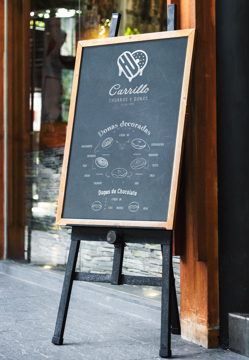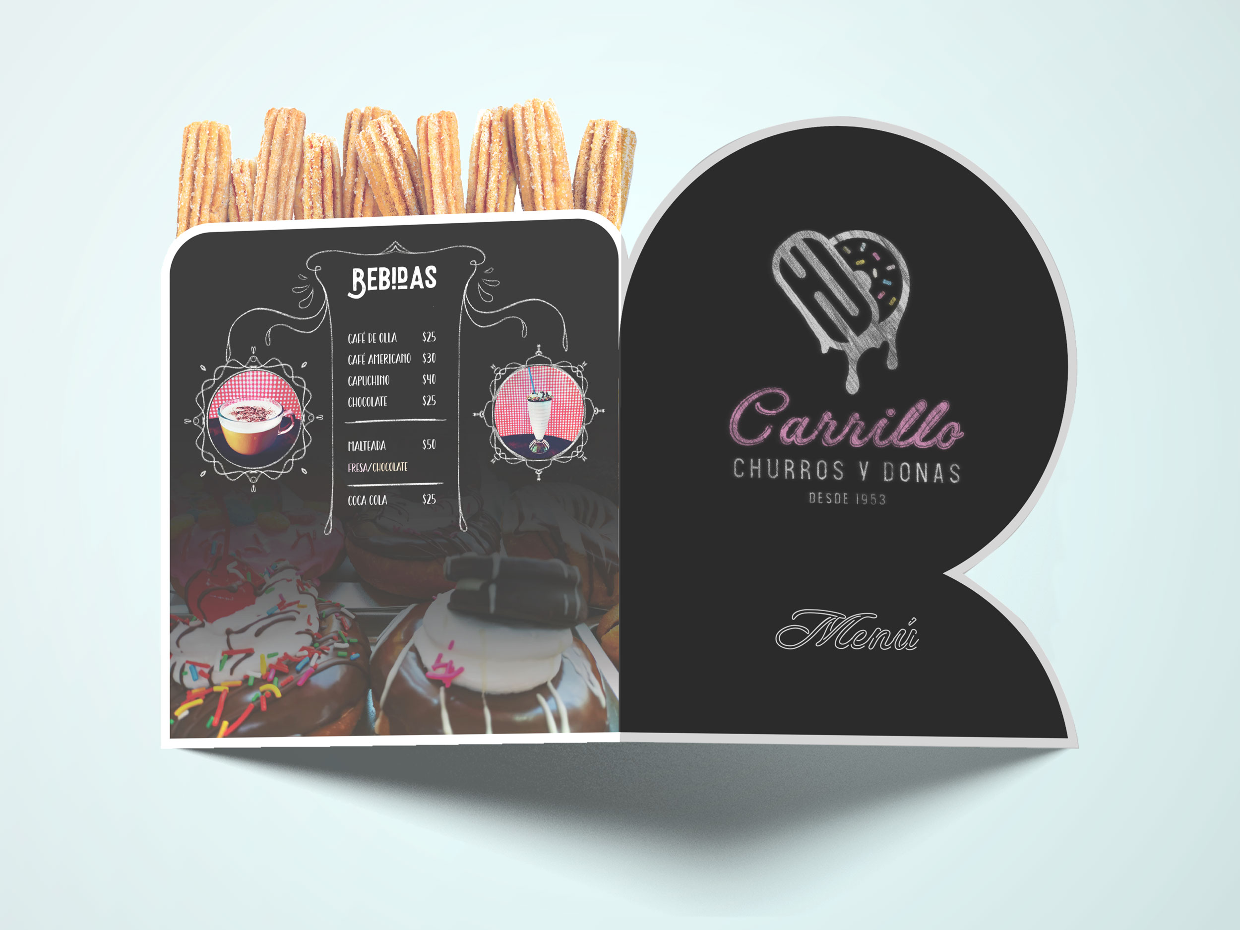 Carrillo es un restaurante-café especializado en churros y donas gourmet. Hemos realizado su branding desde cero, que incluye imagotipo, versiones, definición de colores corporativos, tipografía, usos, aplicaciones, entre otros.